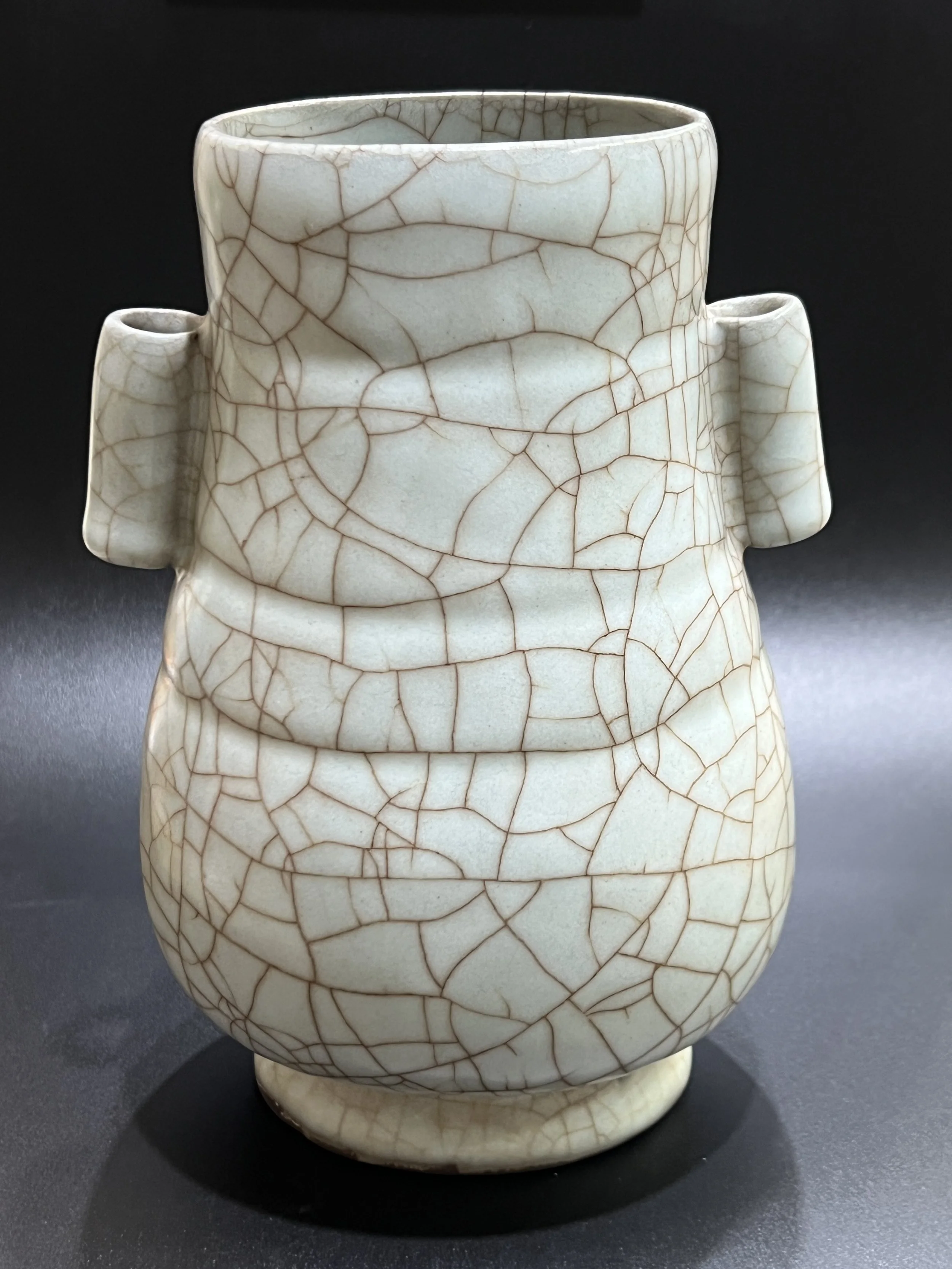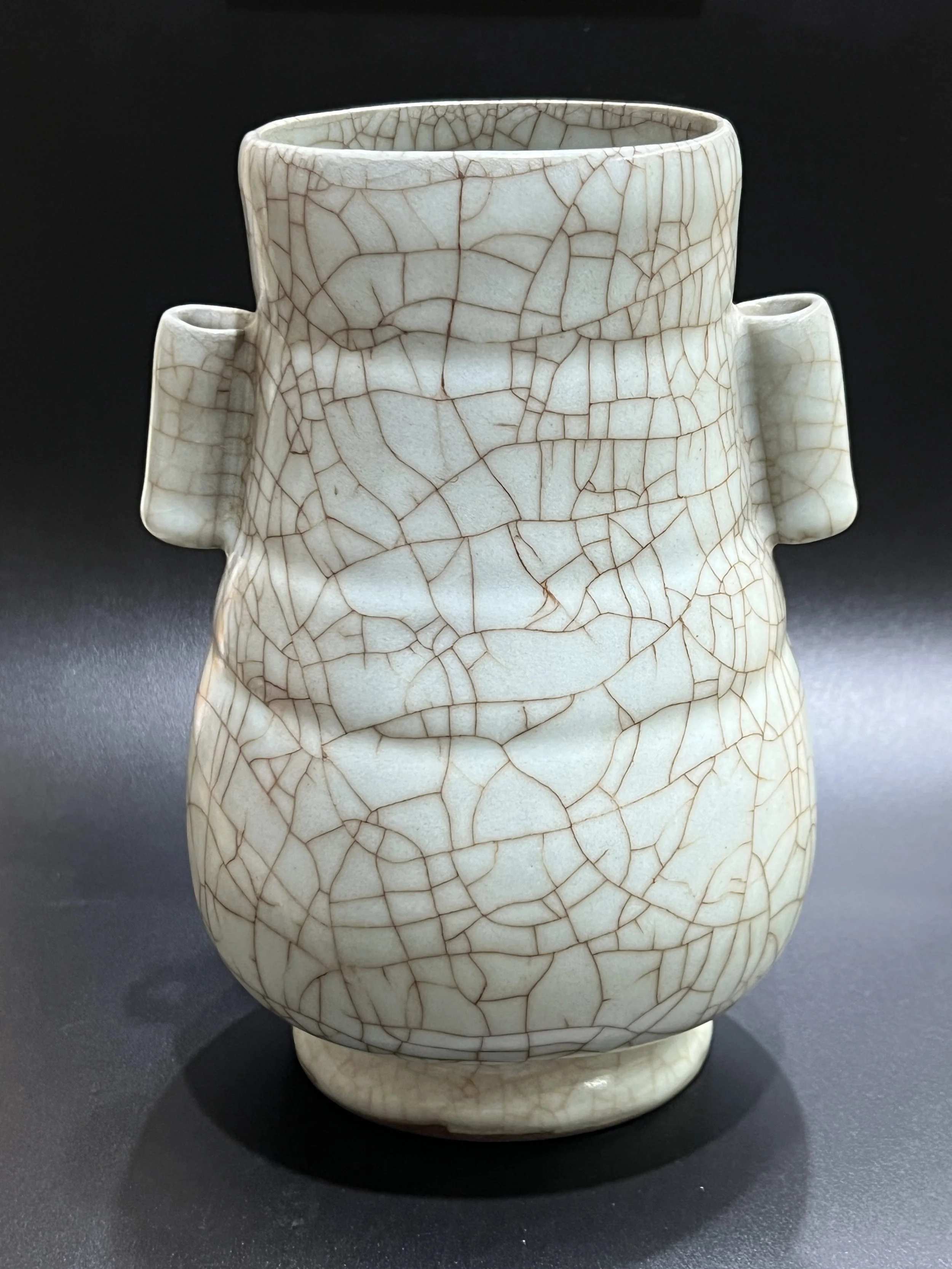 Song Dynasty Guan Kiln Everted-Ear Bottle。