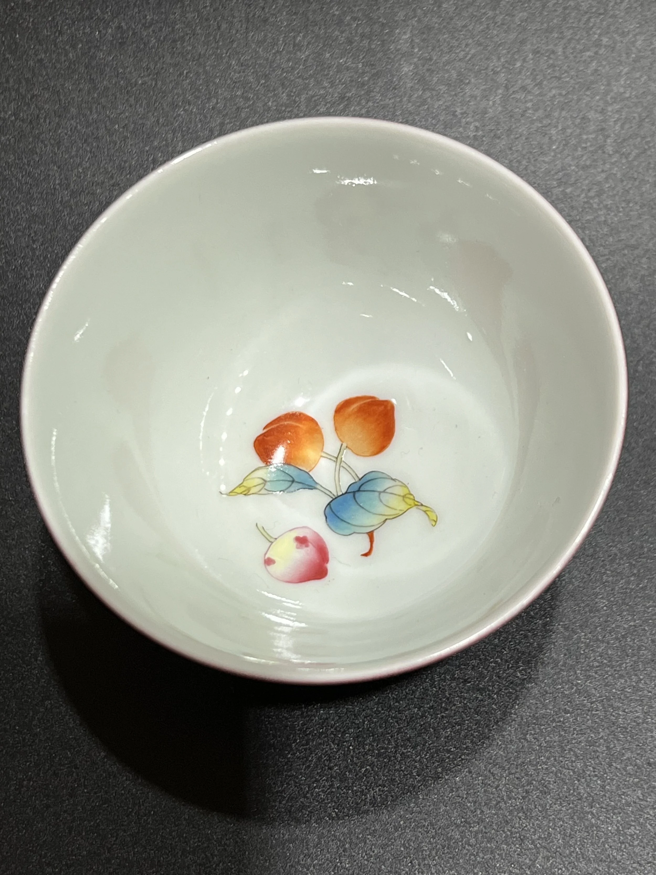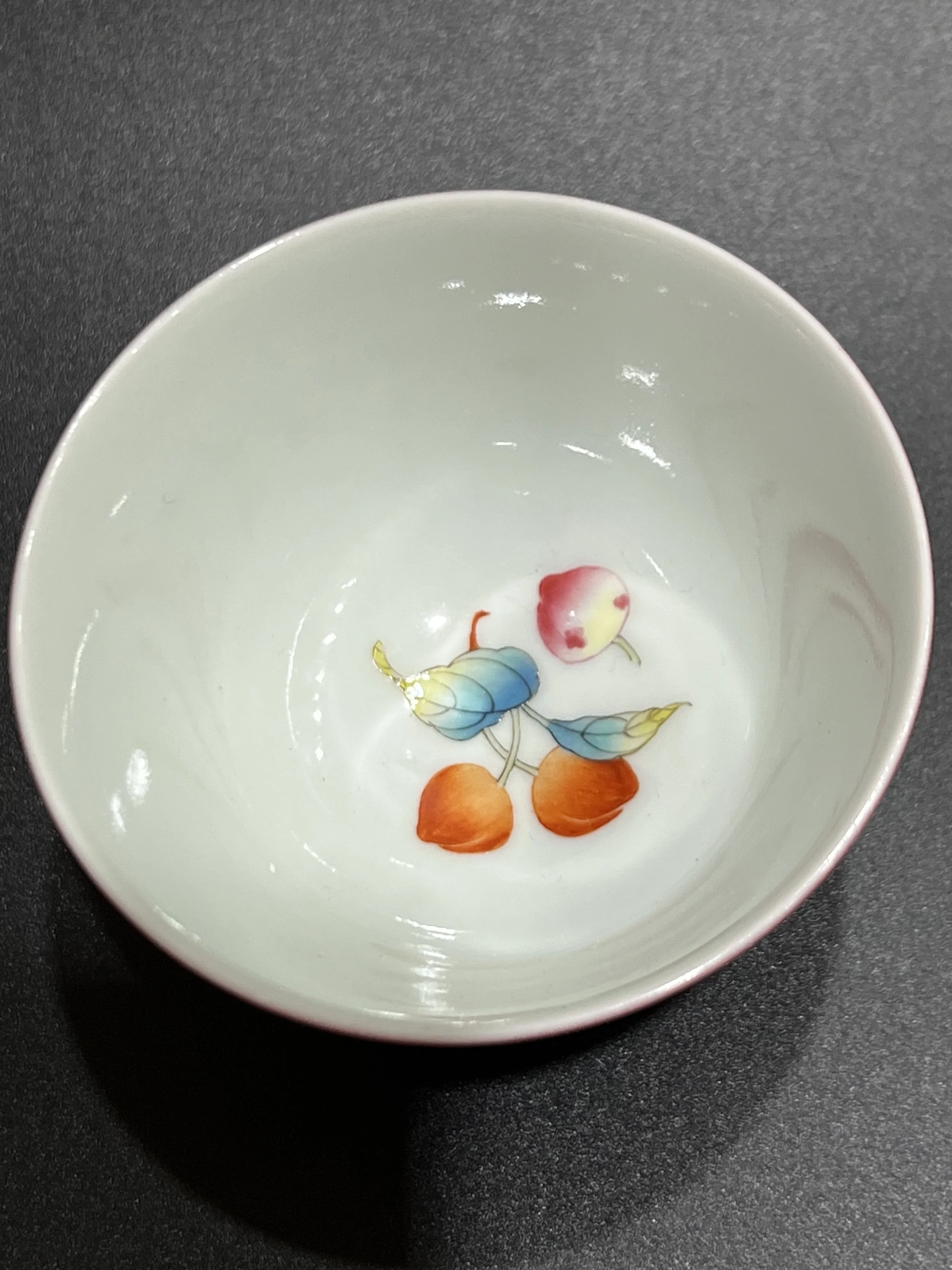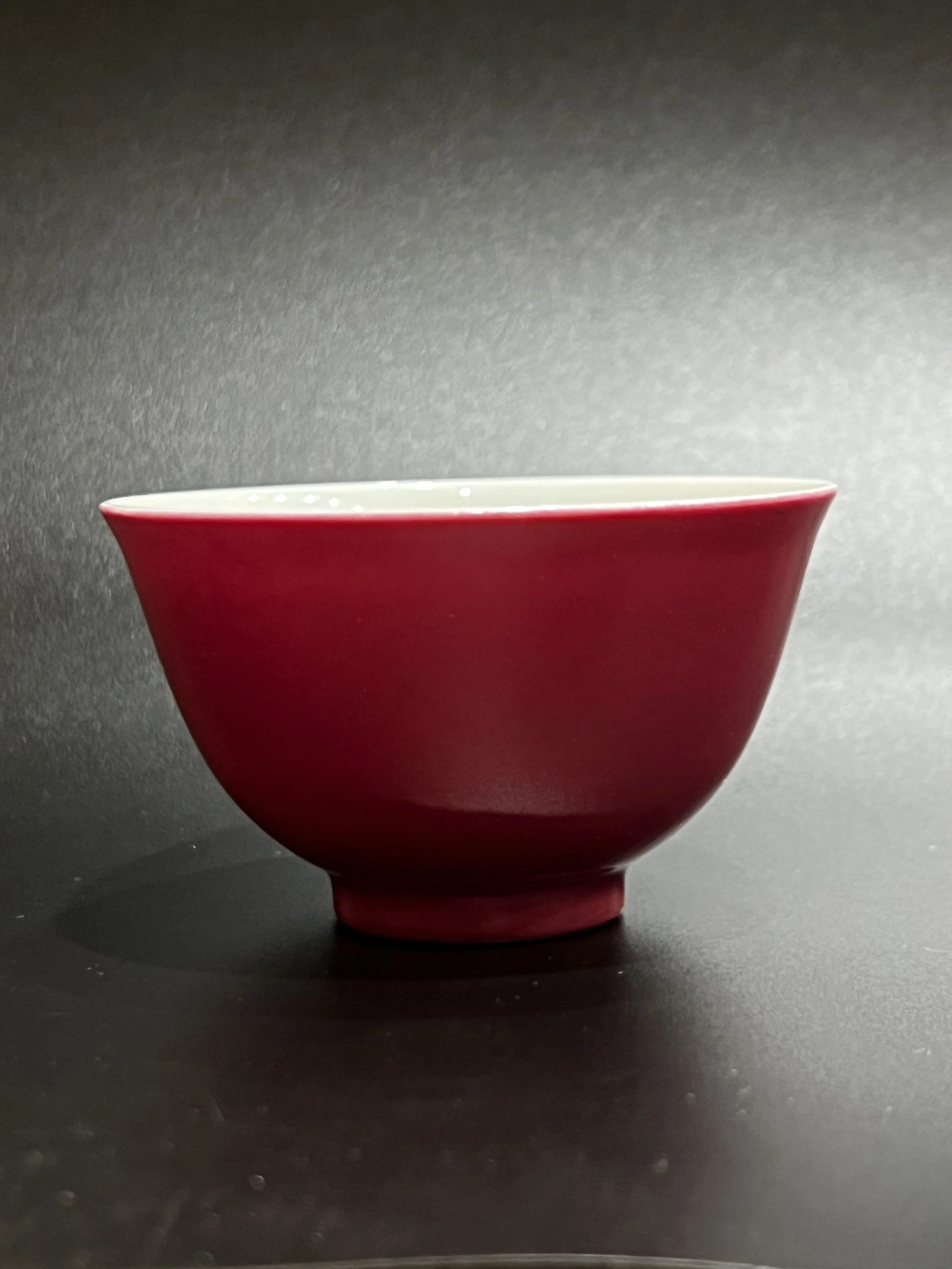 The cup is typically made with an exceptionally fine and thin porcelain body, often referred to as "egg-shell" porcelain, which is translucent and exudes a sense of delicacy. The exterior of the cup is coated with a rose-pink glaze, known in Chinese as "Yan Zhi Hong." This unique glaze is created by adding a minute amount of gold (Au) to the glaze mixture and firing it at around 800°C. The result is a vibrant yet soft pink hue that resembles the color of rouge, hence its name.